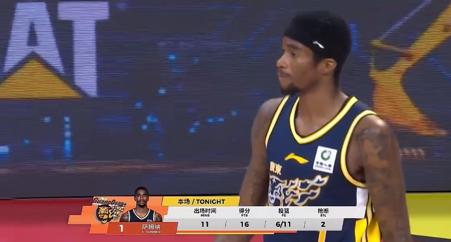 第三节前8分钟,萨姆纳依靠过硬的个人能力疯狂砍分,突外投连7中5得12分,联手奎因包揽广东前半节所有得分,萨姆纳化身战神,单节飚进2记三分,两度将分差缩小到只差9分。